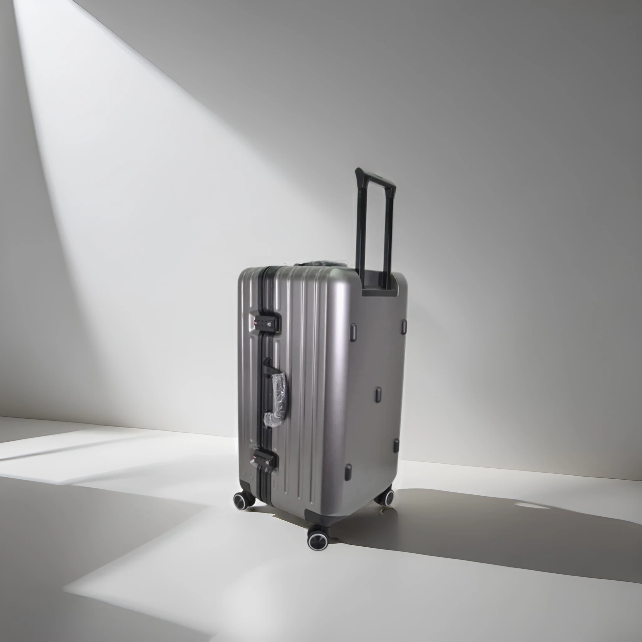 Reinforced Silver Spinner Suitcase with TSA Lock and Multi-Directional Wheels
