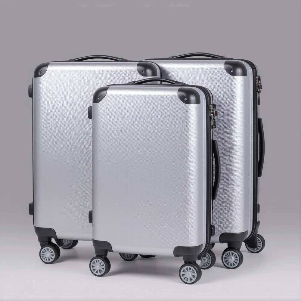 Silver Suitcase Set for Travelers - Durable Ribbed Design